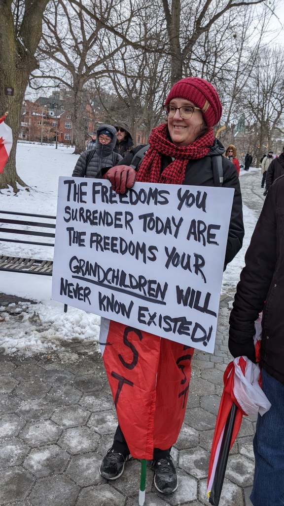 Toronto anti-Covid-19 restrictions protest signs Share this: Click to share on X (Opens in new window) X Click to share on Facebook (Opens in new window) Facebook Like Loading... Related