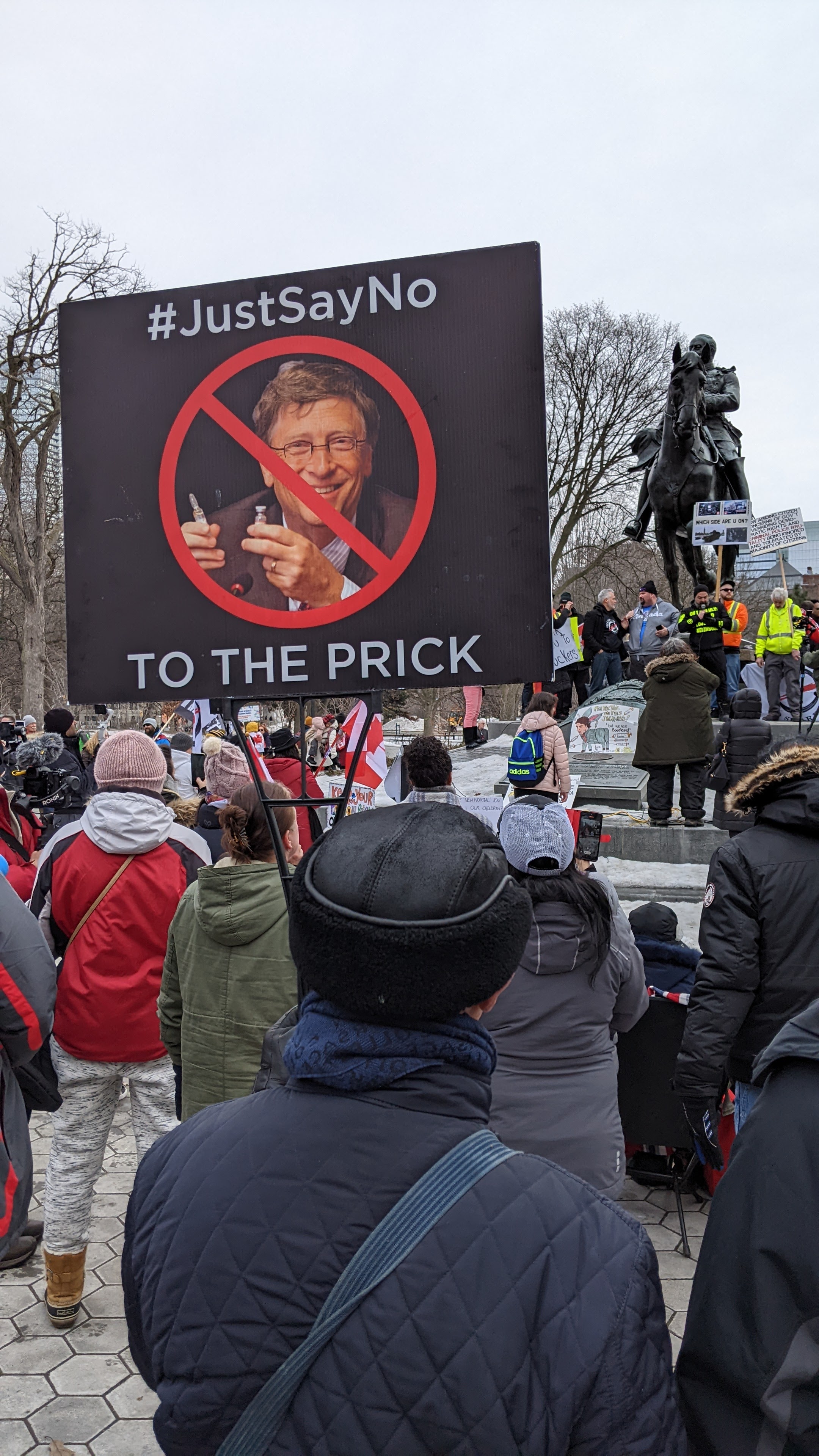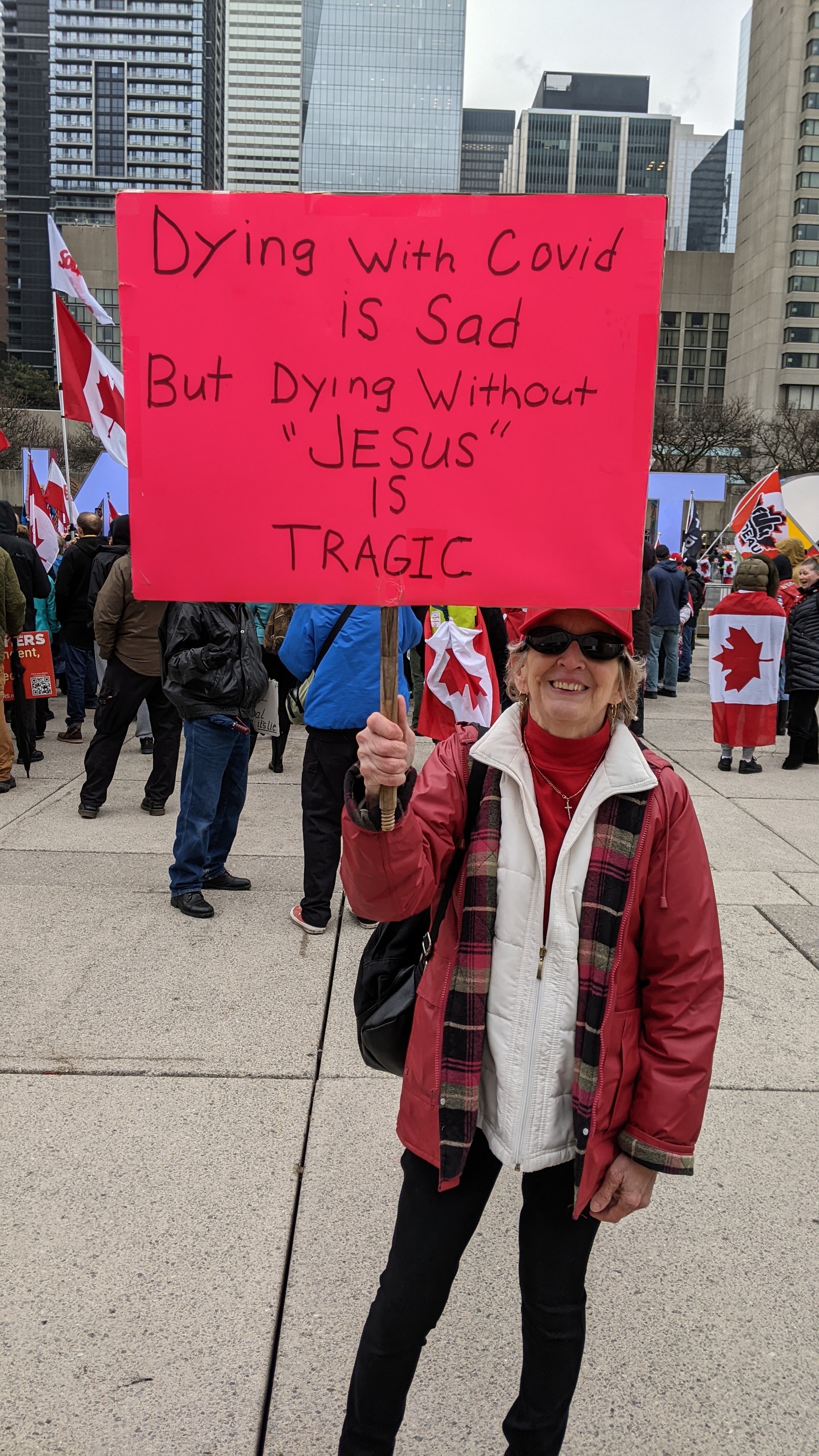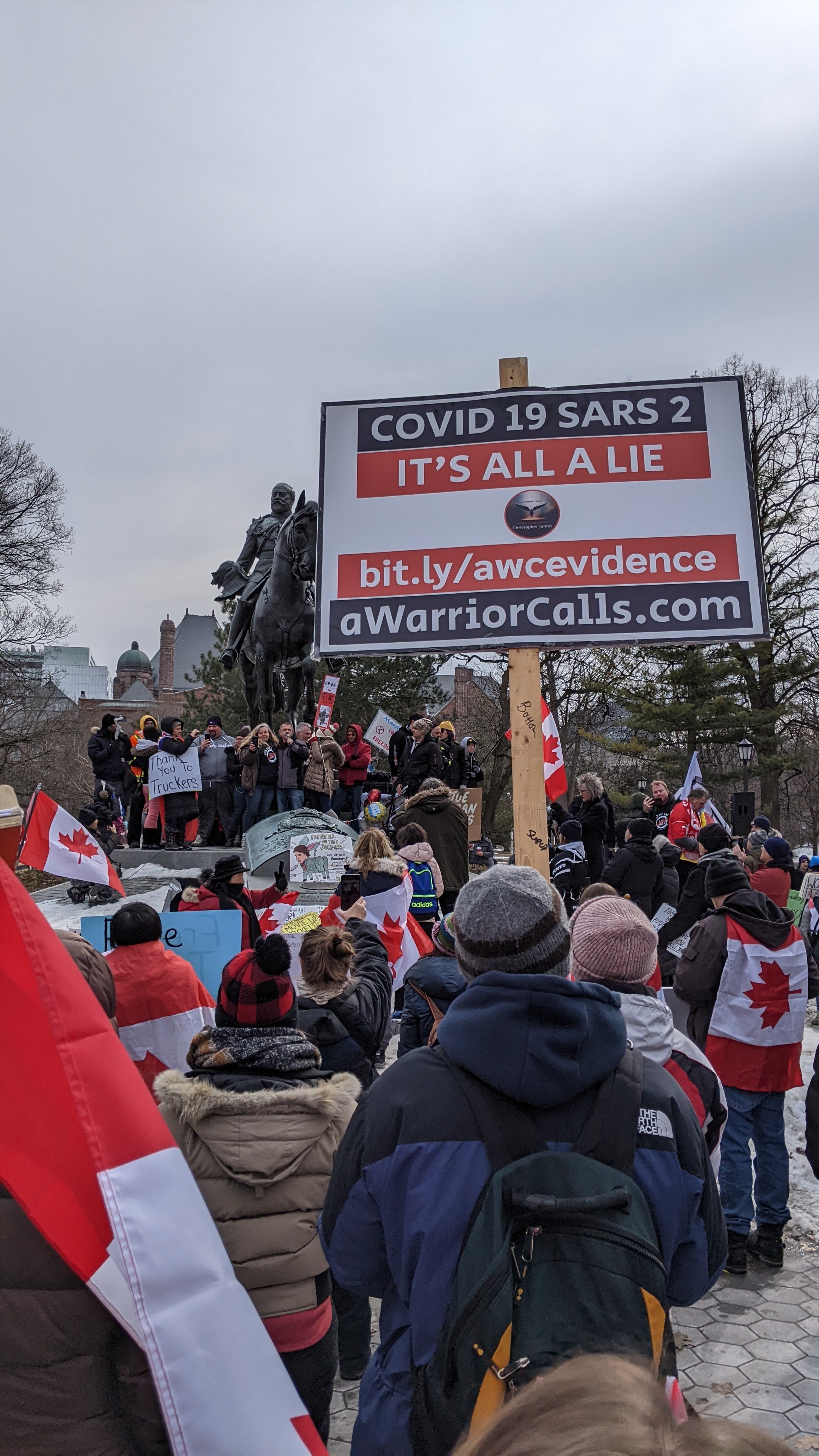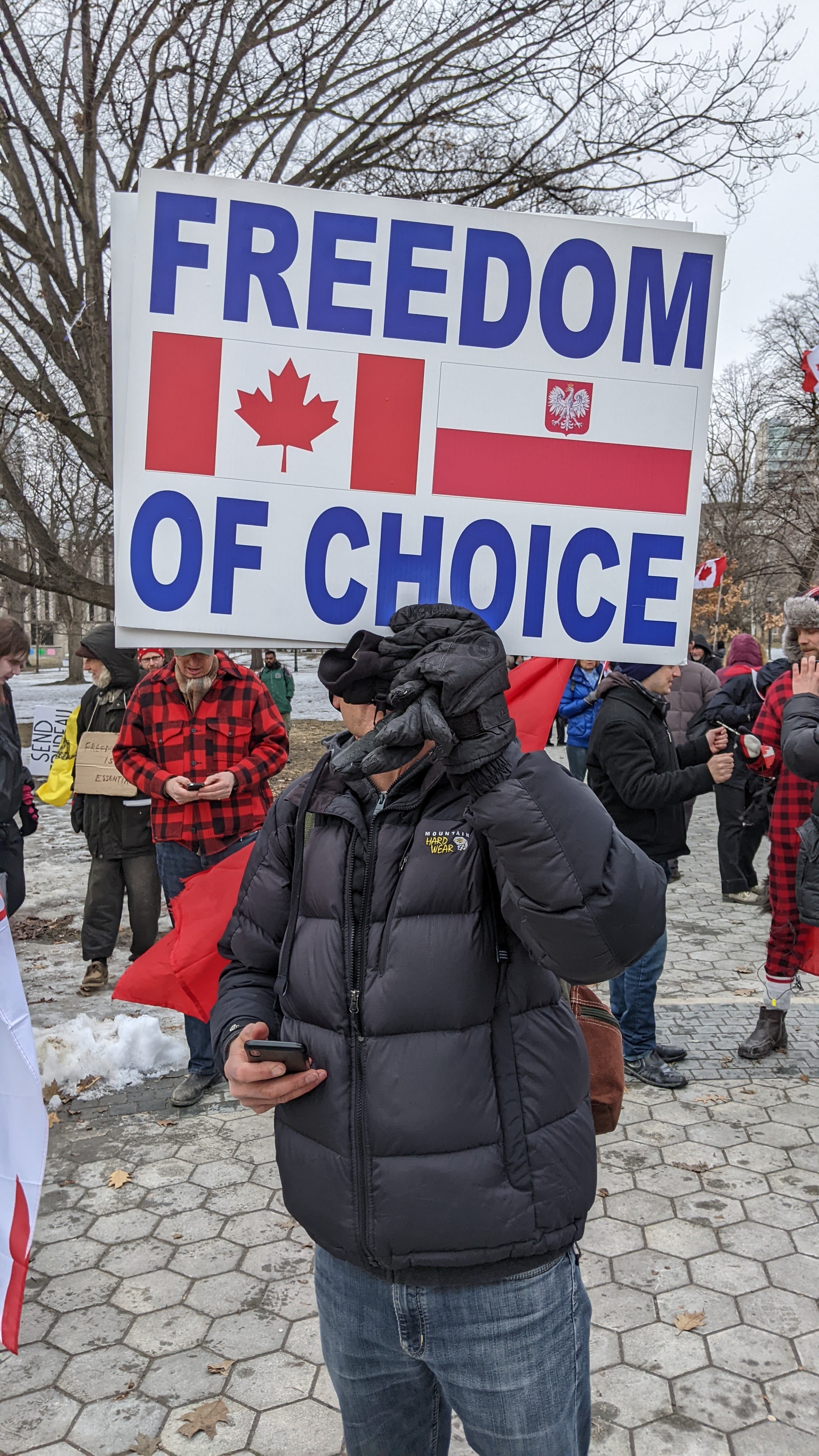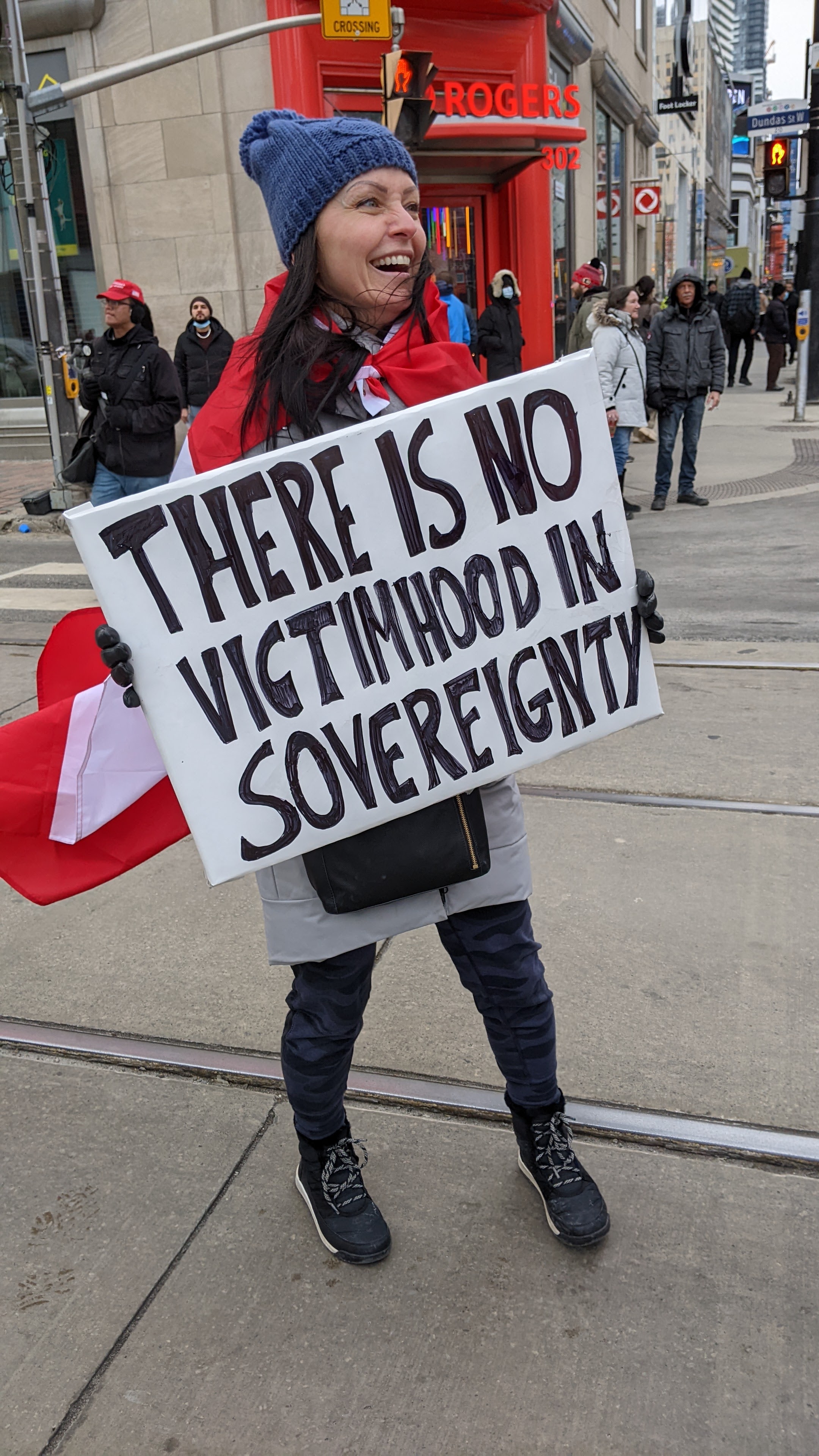 Pictured are signs people brought to Nathan Phillips Square in Toronto for a Canadian patriot/trucker protest against Covid-19 restrictions and mandates. This post is one in a series documenting the movement’s political expression.