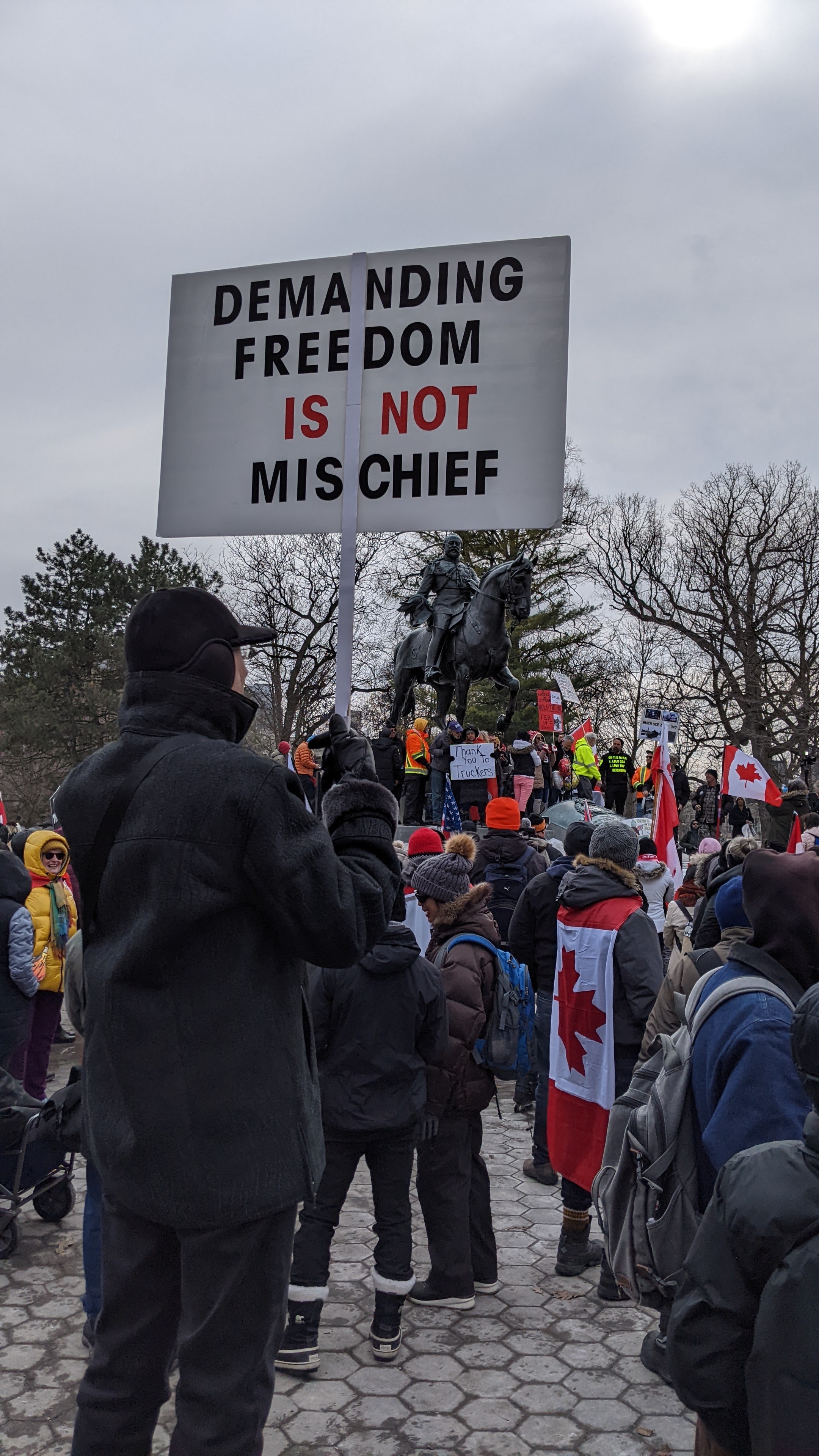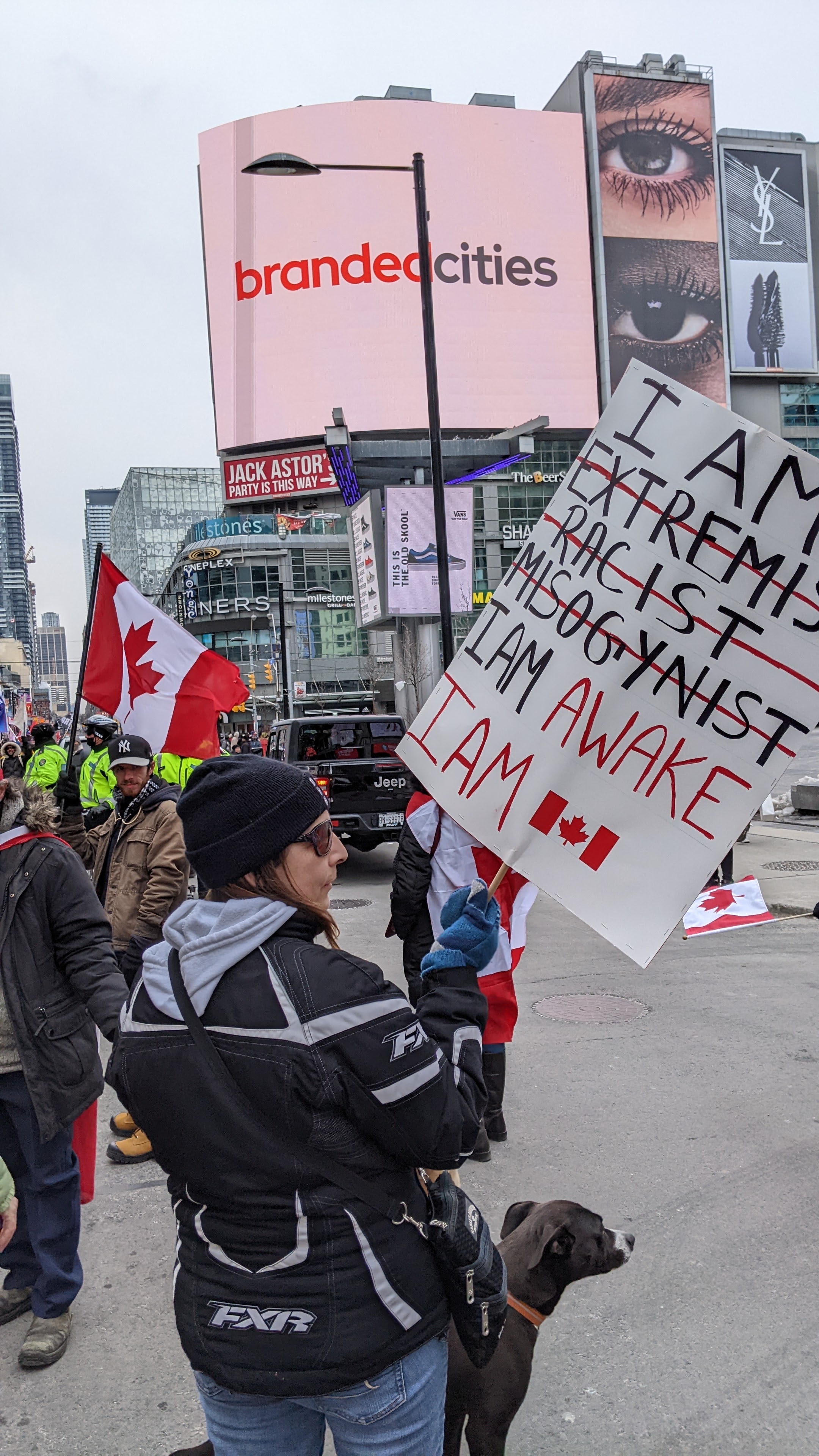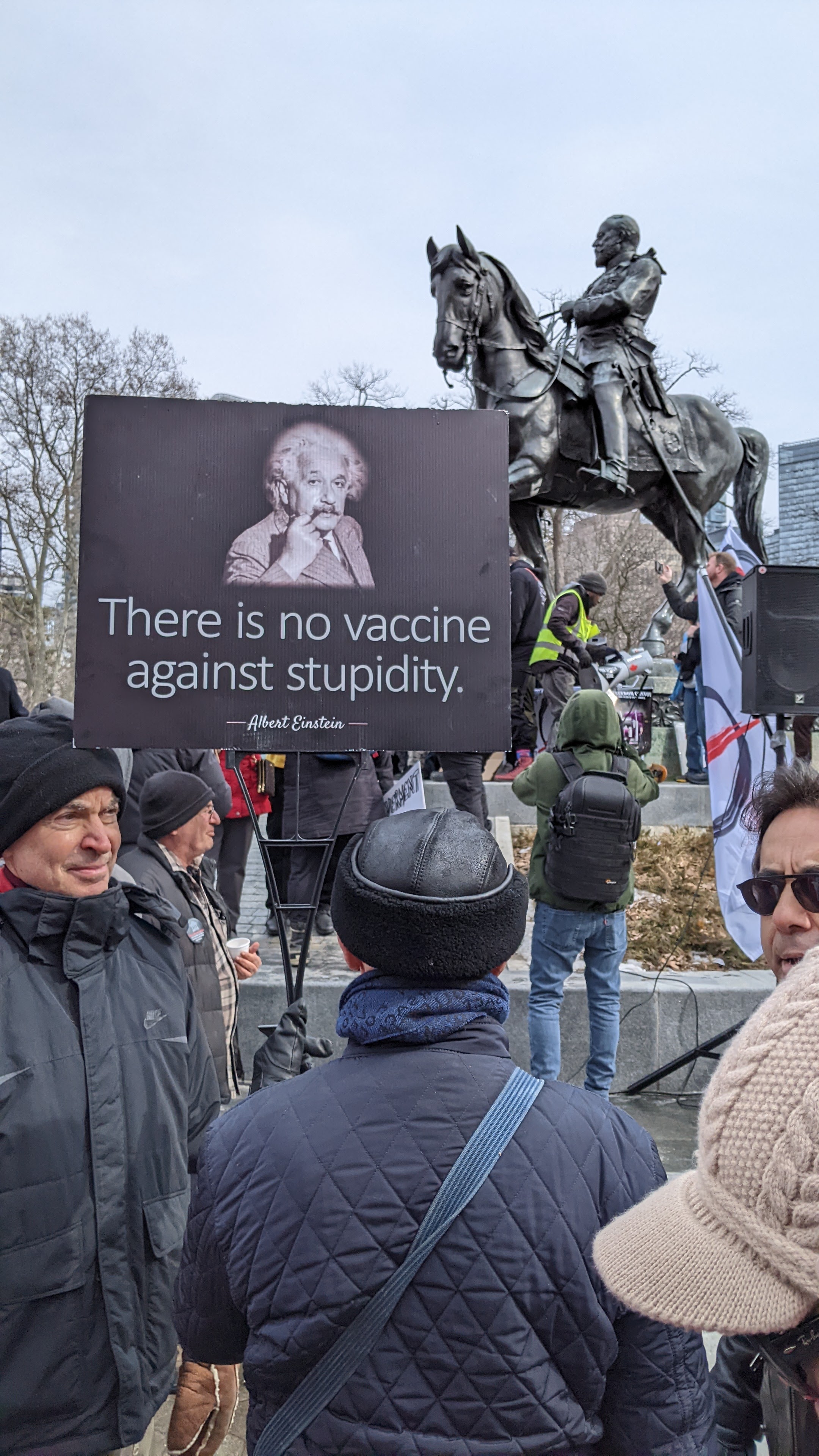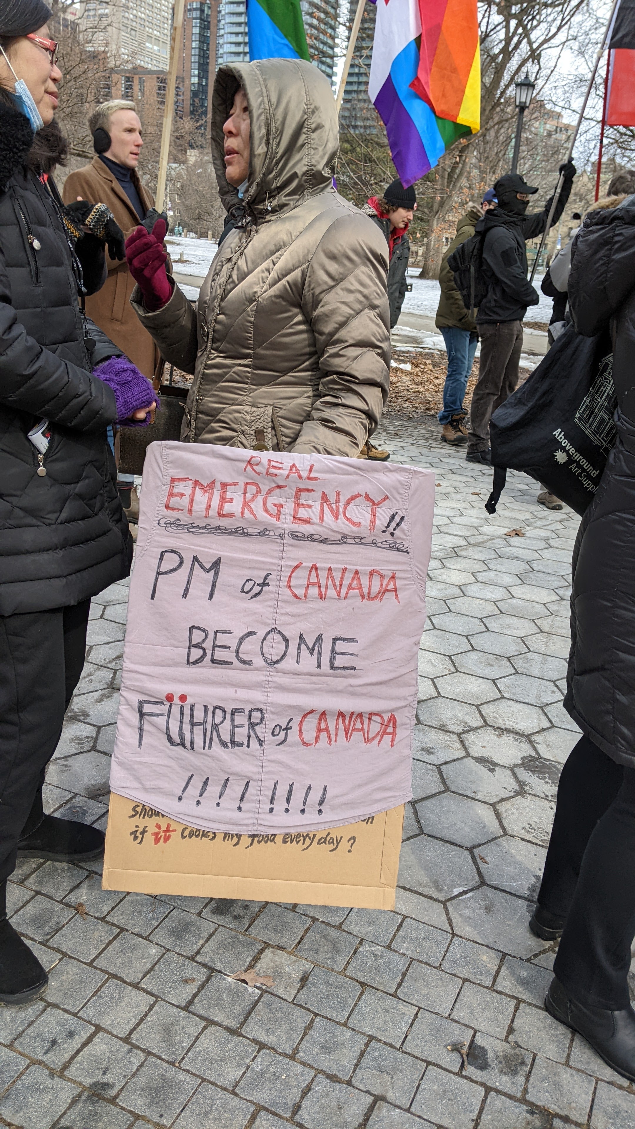 Pictured are signs people brought to Nathan Phillips Square in Toronto for a Canadian patriot/trucker protest against Covid-19 restrictions and mandates. This post is one in a series documenting the movement’s political expression.