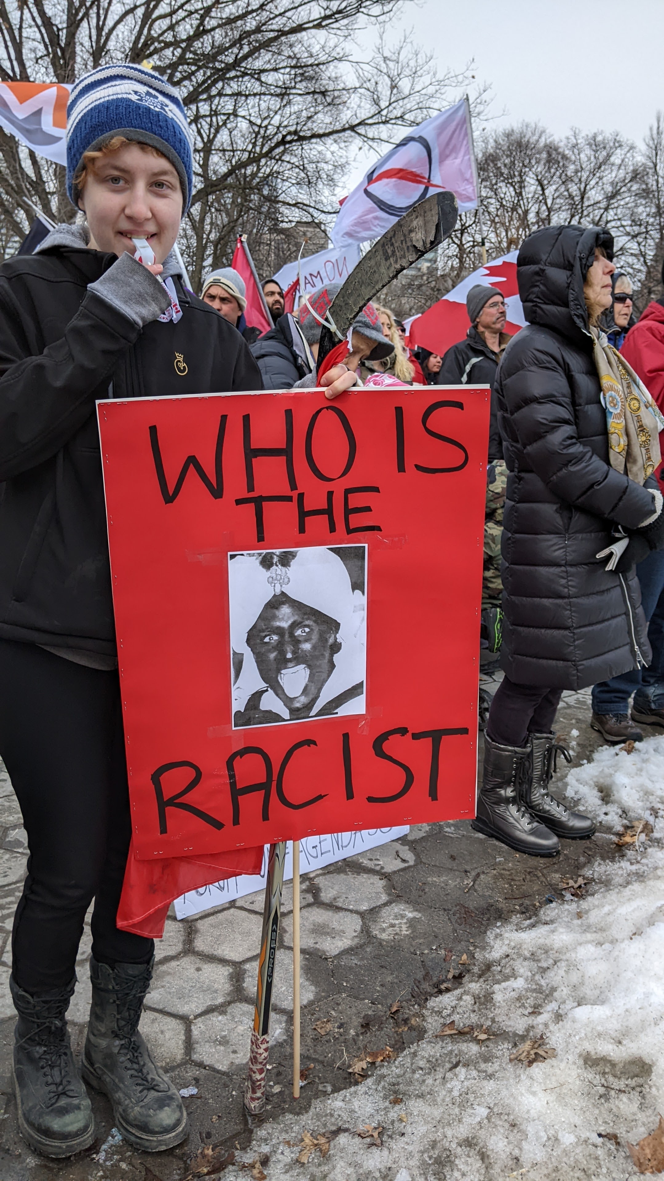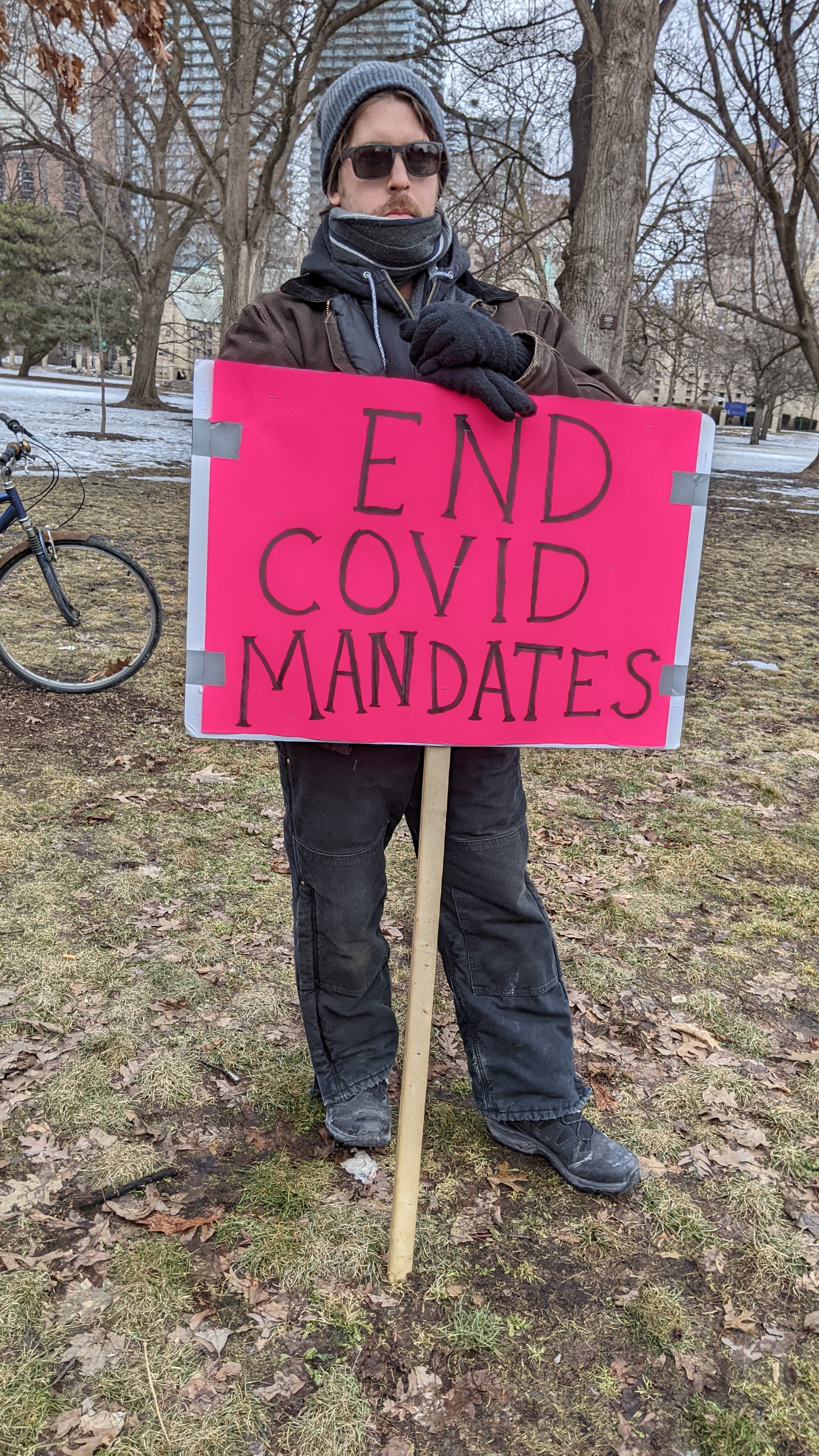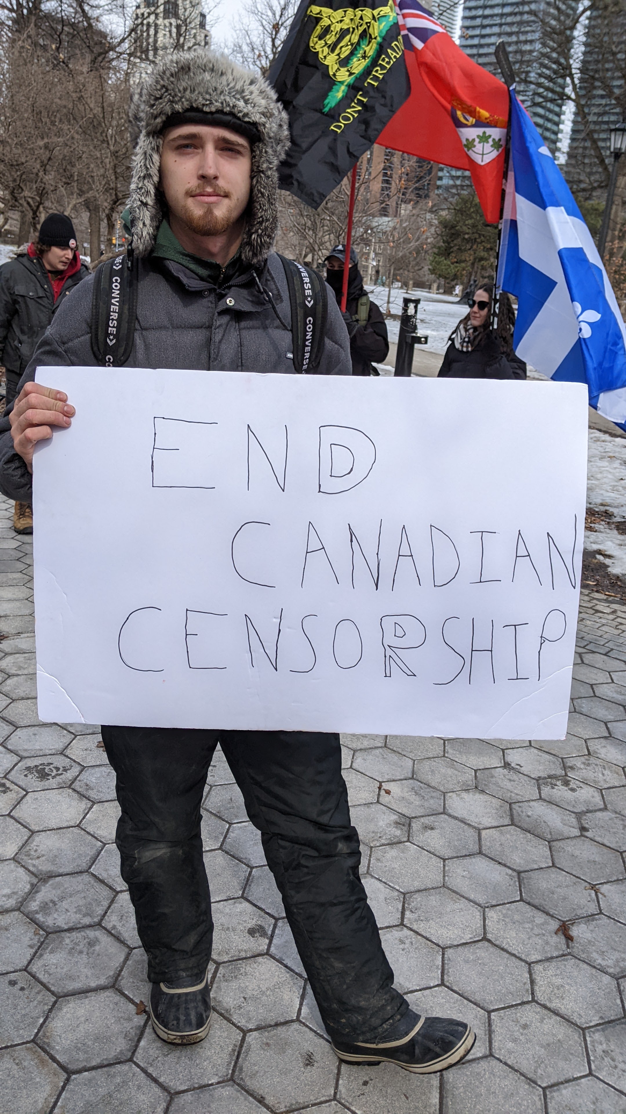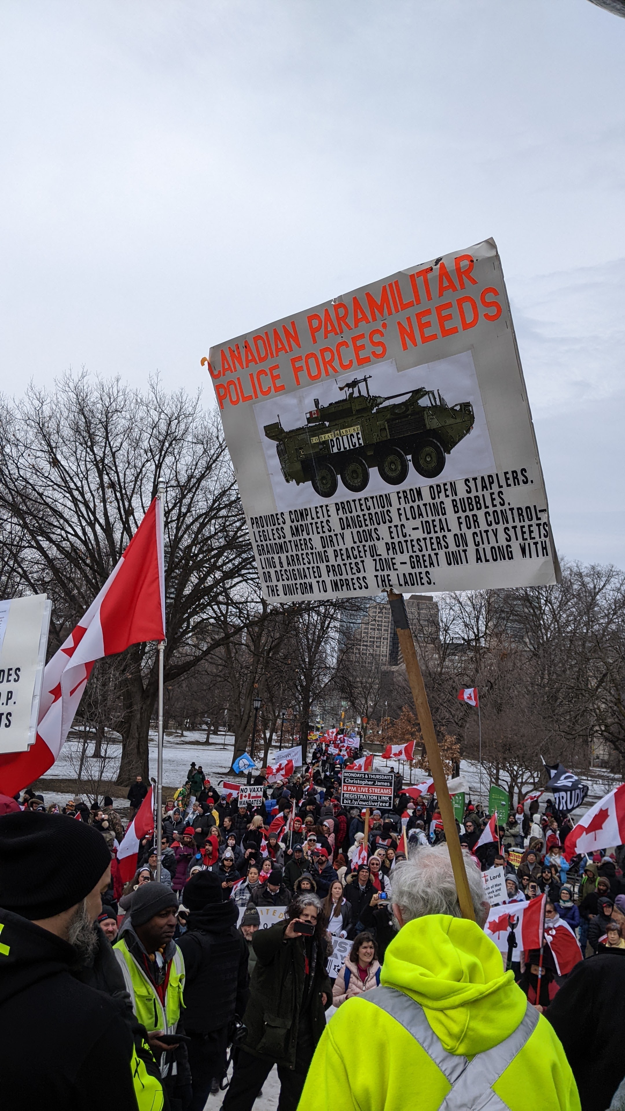 Pictured are signs people brought to Nathan Phillips Square in Toronto for a Canadian patriot/trucker protest against Covid-19 restrictions and mandates. This post is one in a series documenting the movement’s political expression.